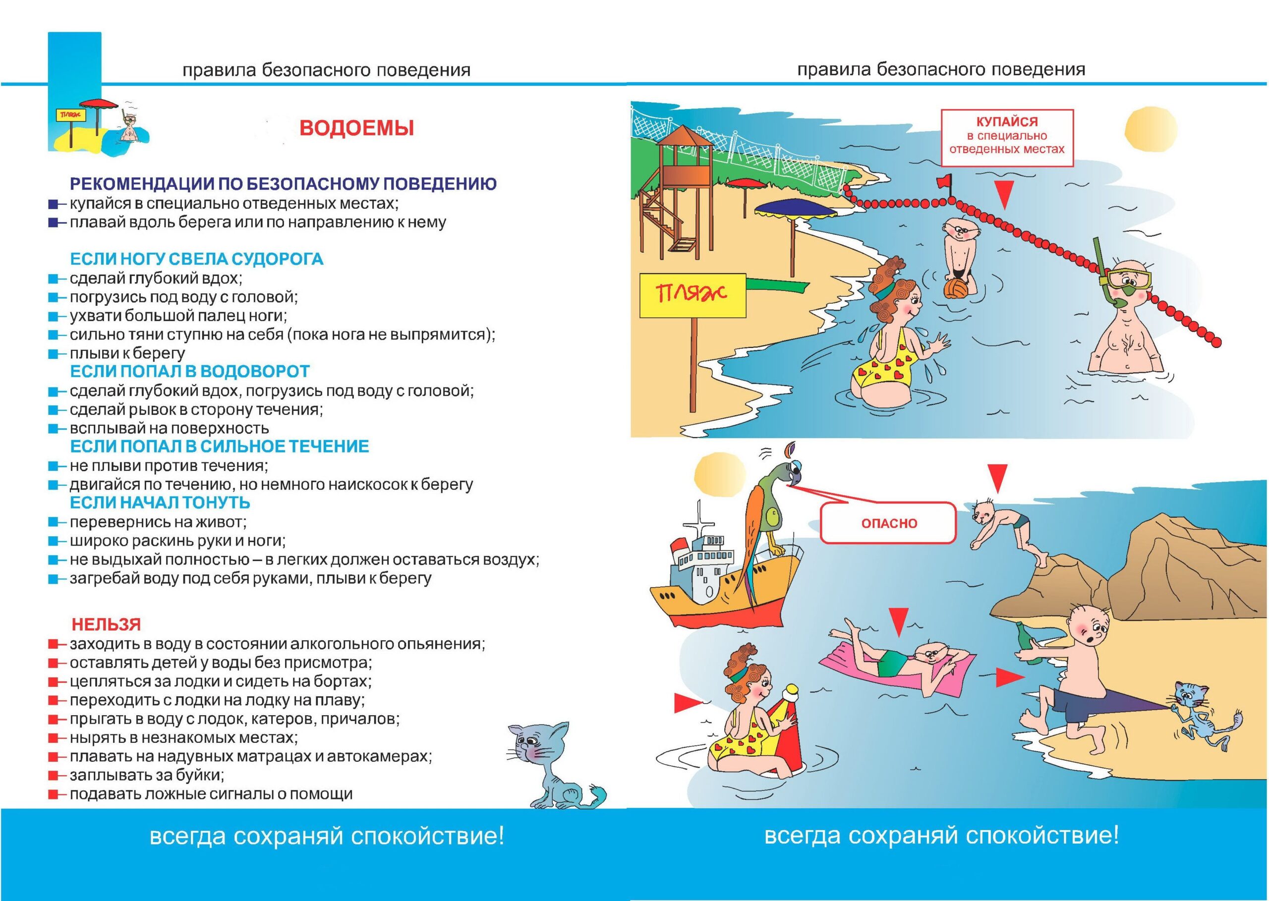 • Всегда плавай в специально предназначенных для этого местах, на оборудованных и безопасных пляжах;