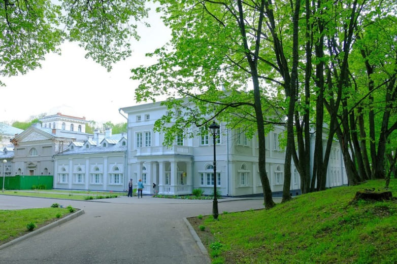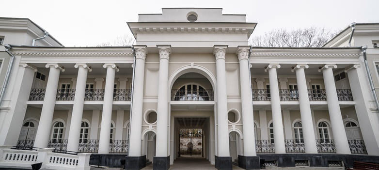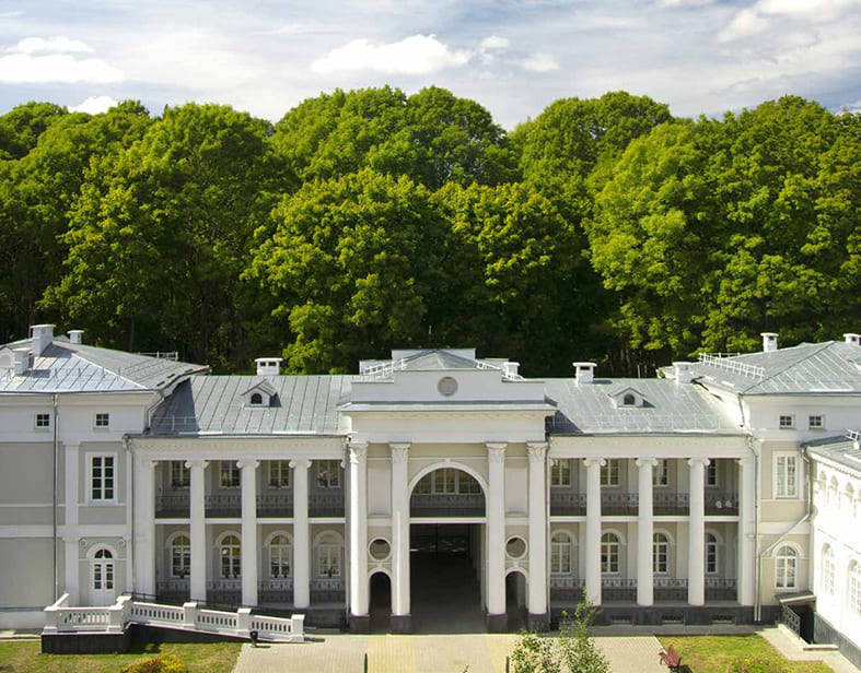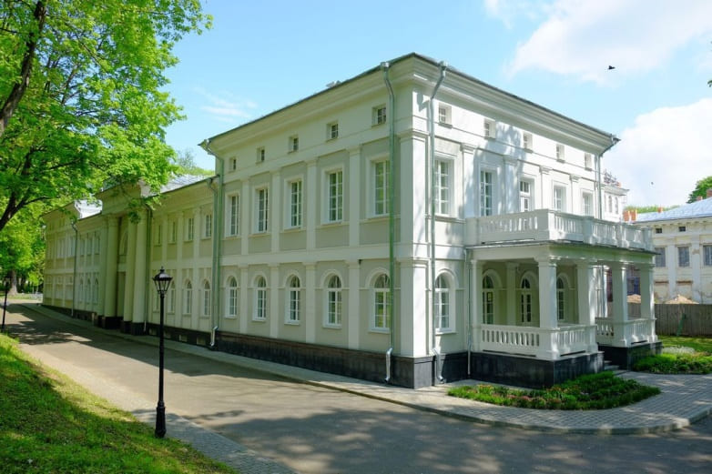 Архитектурный П-образный комплекс включает секции разной этажности, с башней и состоит из около 100 помещений общей площадью 4 тыс. кв. м. Рядом на 20 га раскинулся парк.