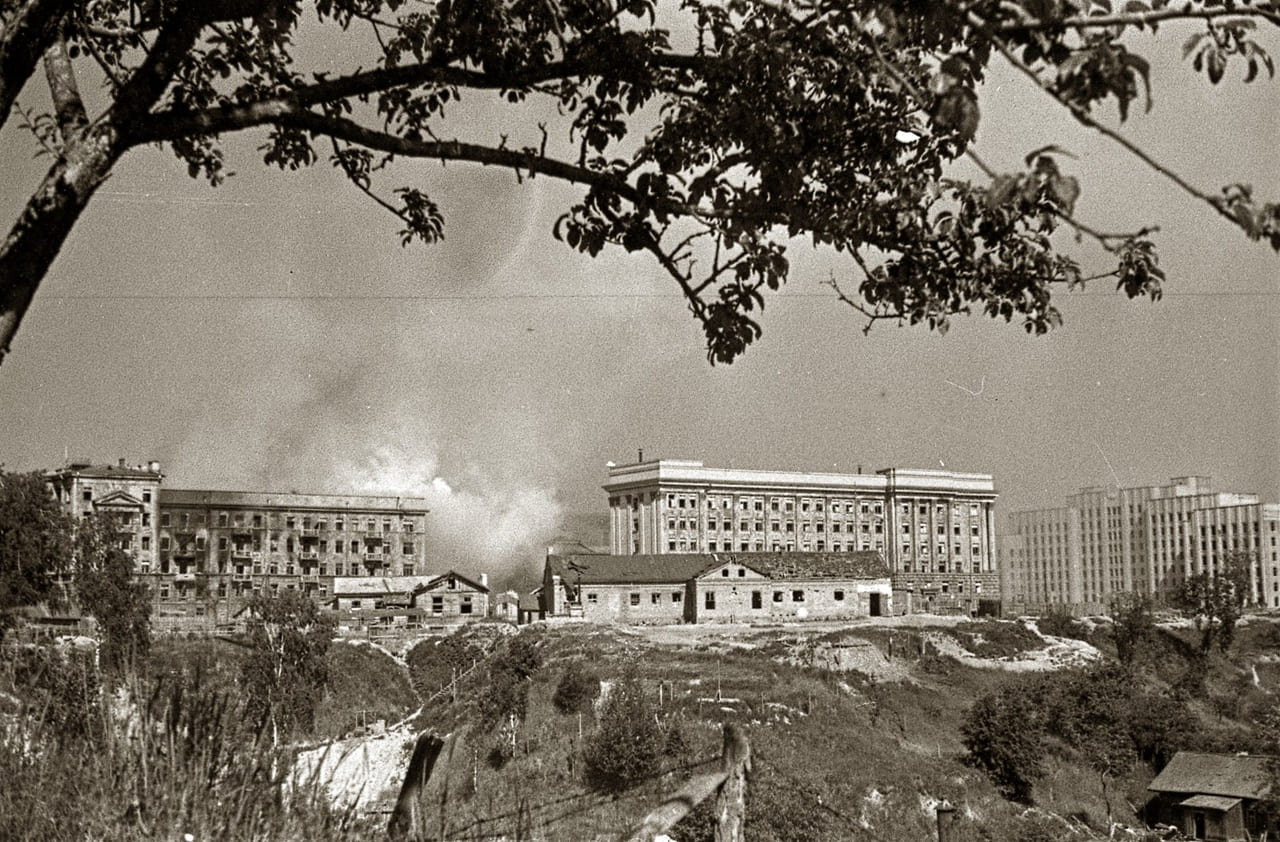 Площадь и окружающий ее архитектурный ансамбль пережили войну.