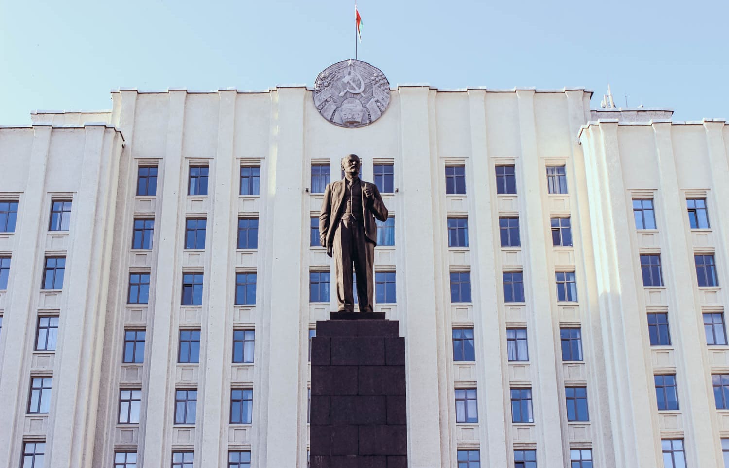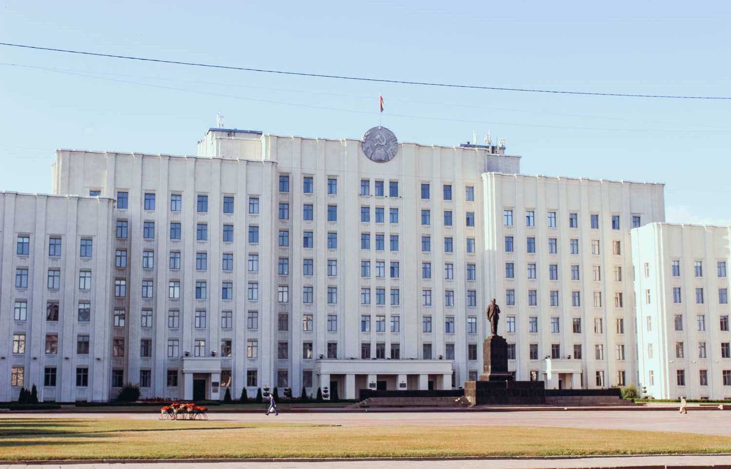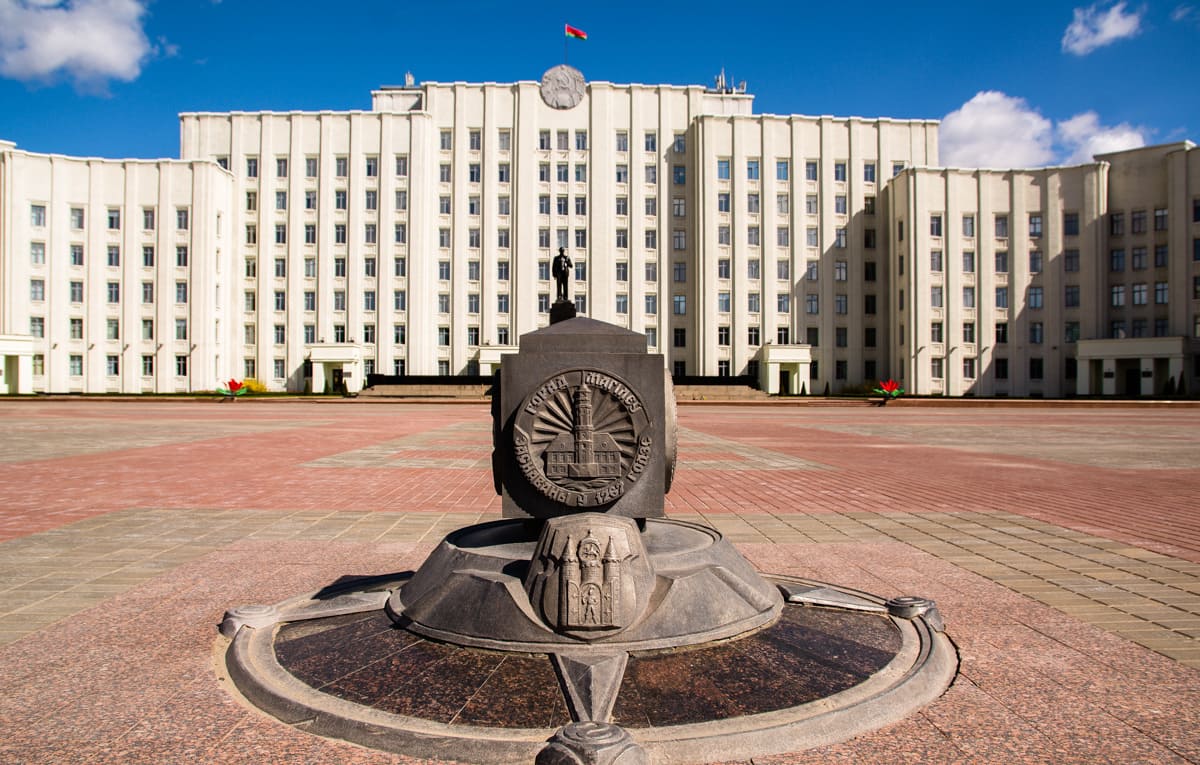 В 1957 г. перед Домом Советов был открыт памятник В.И. Ленину. Работа бакинского скульптора Сабсая, проект постамента и трибуны выполнил белорусский архитектор Волчек.