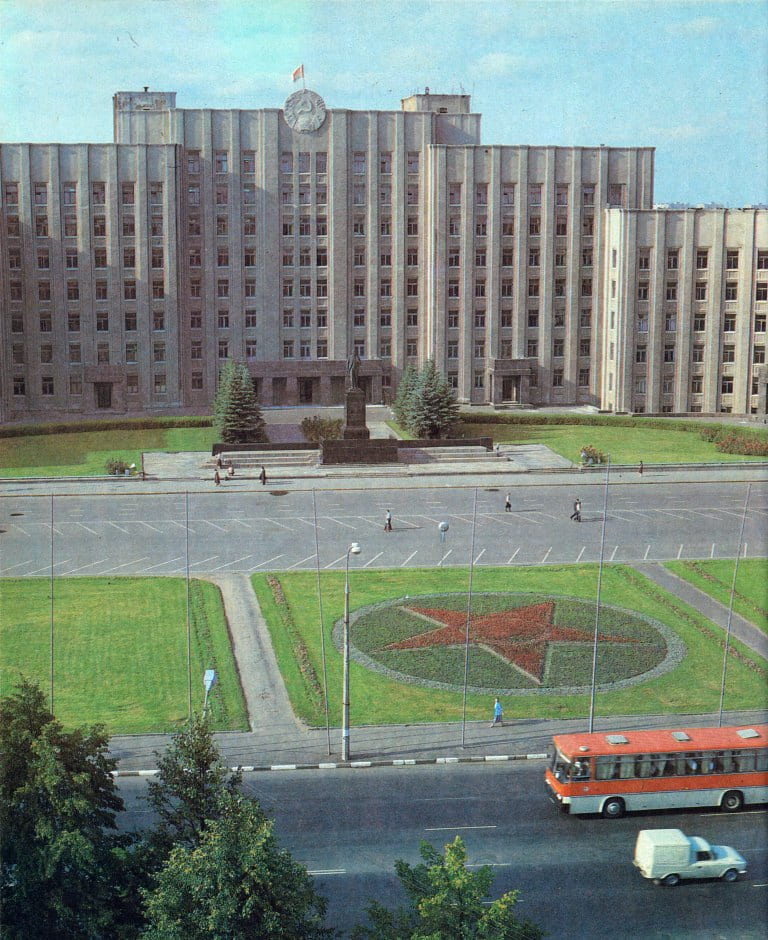 Дом Советов (арх. Иосиф Лангбард) возведен в 1938 — 40 гг. и занимает центральное место площади. Главным фасадом здание выходит на площадь, имеет пирамидальный вид с ритмичным нарастанием объемов к центру.