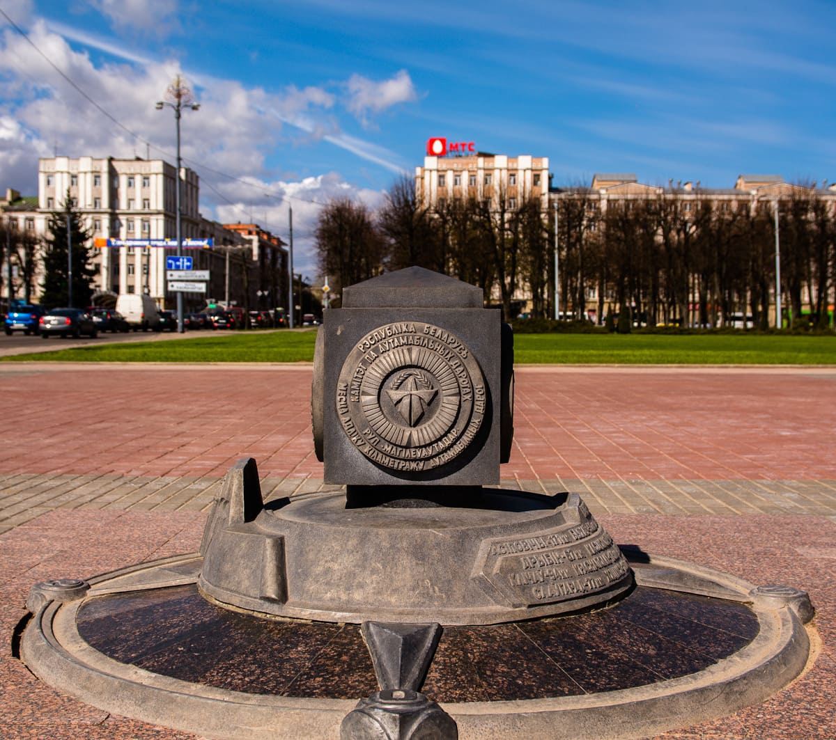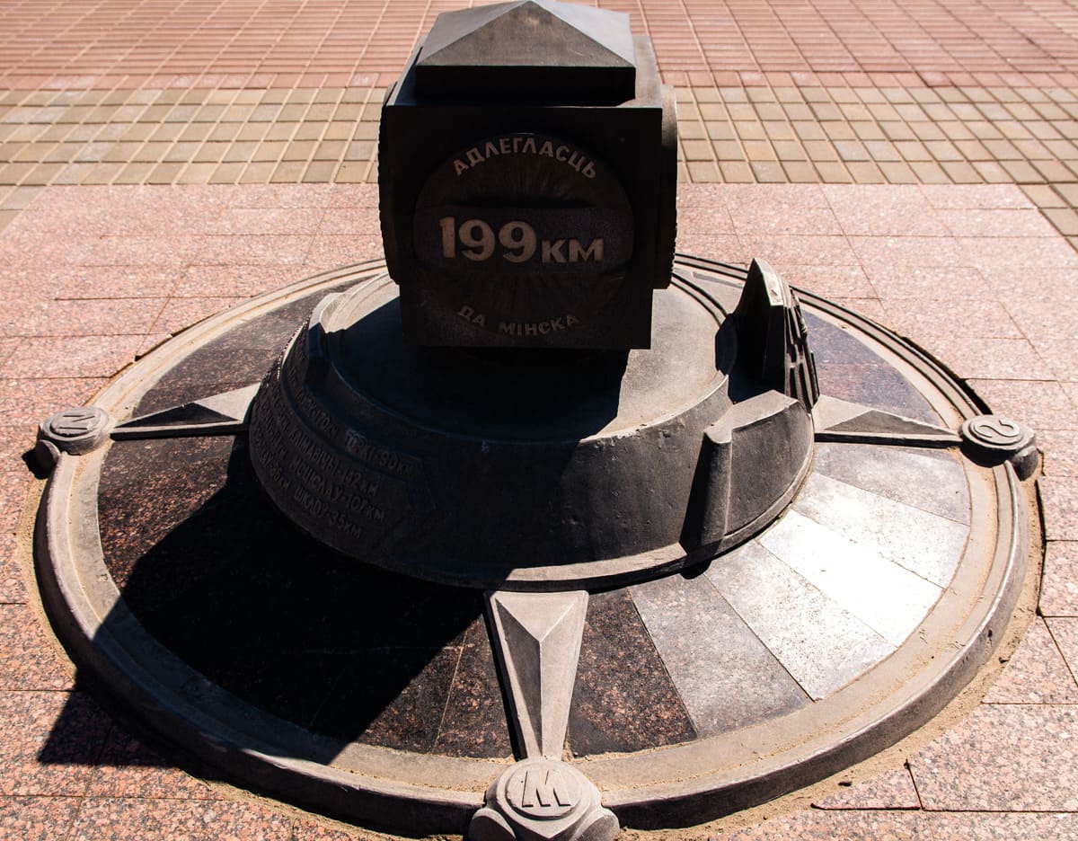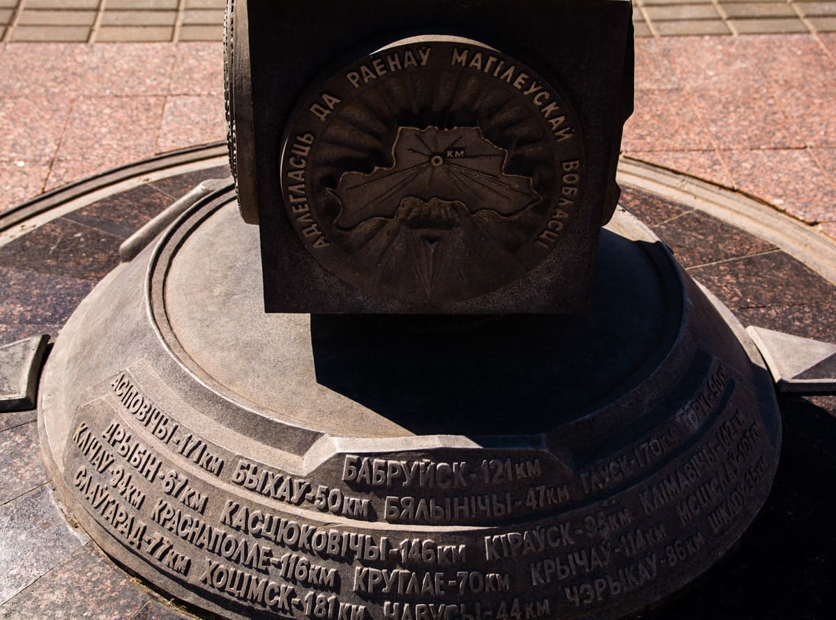 На площади размещается знак нулевого километра, представляющий собой гранитный купол на подставке. На одной из сторон купола нанесена надпись с датой основания Могилева, на другой указано расстояние до Минска, а на подставке изображен герб города и указано расстояние до районных центов Могилевской области.